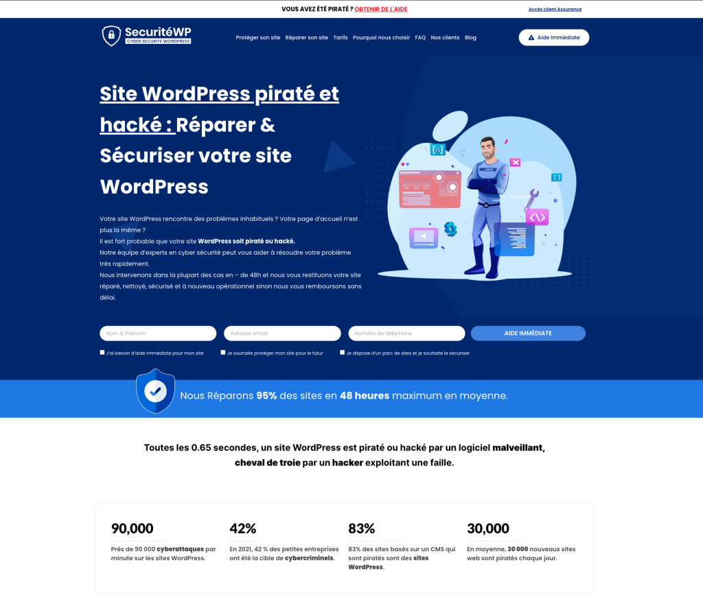 Spécialisé dans la protection et la réparation de site SecuritéWP (hack redirection, Spam SEO, Index modifié….).